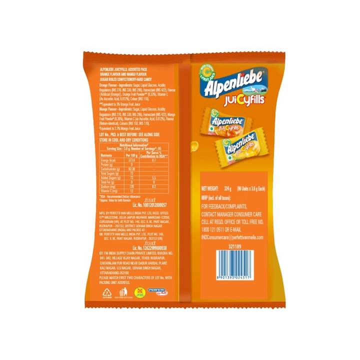 Alpenliebe JuiCyfills presents an innovative, enjoyable and fun-filled unique offering with a liquid filled candy and a crunchy exterior. It is enriched with goodness of fruit juice and Vitamin C. The orange and mango flavours appeal to both kids and adults alike making it a perfect candy to Bring hearts closer but with a splash of ‘Shararat’, perfect for sharing with your loved ones.