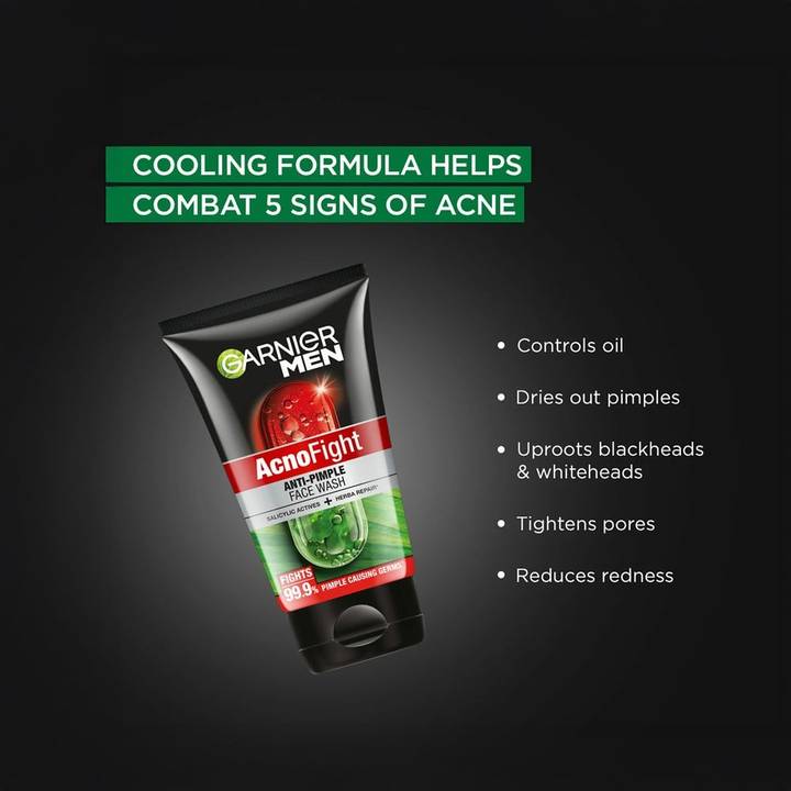 Reveal fresh, bright, and clear skin with the Garnier Men Acno Fight Face Wash. Germs and oil attack men’s skin and clog their pores, giving rise to acne and blackheads. The Acno Fight Facewash fights up to 99.9% of pimple causing germs to dry pimples, uproot blackheads, and give you skin that is clean and refreshed. Formulated with natural ingredients, the anti-acne face wash also helps control excess oil production and regenerates and repairs your skin to give you a healthy glow. The salicylic acid in the Garnier face wash for men neutralizes the bacteria and cleanses the skin while the micro-beads gently exfoliate the skin, unclog the pores, and remove blackheads.