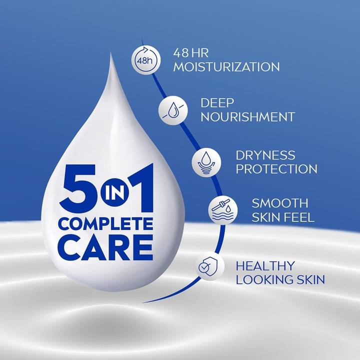 NIVEA Body Milk nourishing body lotion, powered by Hydra IQ technology, supports the formation of new aquaporins—your skin’s natural hydration channels—to deliver 24-hour moisturization with just one use. Infused with natural minerals and moisturizers, this nourishing body lotion provides intense hydration and effective care, leaving your skin noticeably smoother, softer, and healthier with every application.